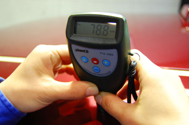 これは、膜厚計です。当ショップでは、塗装の膜厚を計測することで、