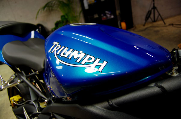 デイトナ675のご入庫です。久しぶりのデイトナです!!スーパースポーツミドルウェイトにおいて、その存在感は抜群ですね。お客さまも大変バイクが好きな方ですので、ご期待を裏切ることなくしっかりと施工させていただきました。